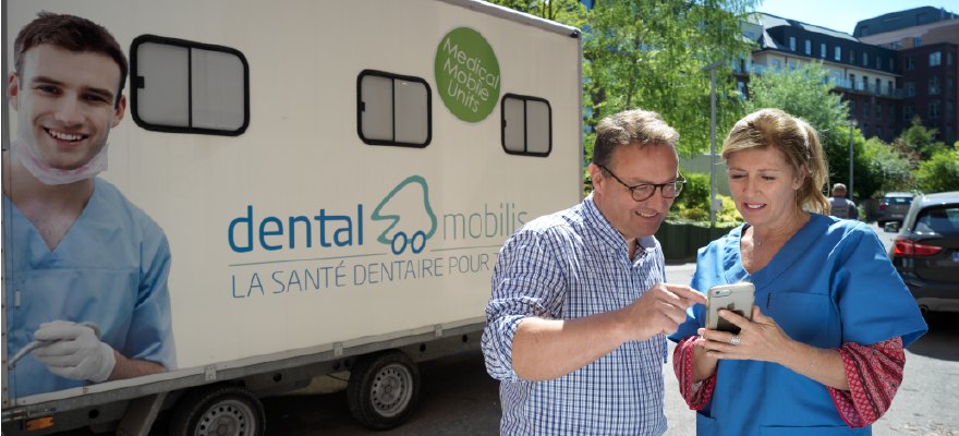 Comment un chef d’entreprise reste en contact avec une équipe aussi diversifiée et mobile que celle de Dentalmobilis? Grâce à son smartphone, bien sûr. "Je ne comprends pas comment les gens peuvent fonctionner sans smartphone. Le mien est pour ainsi dire greffé à ma main, et c’est le cas de toute mon équipe en fait. Nous les utilisons jour et nuit, pour les réseaux sociaux et le cloud. Ils font partie du matériel dont nous avons besoin pour mener à bien notre travail."