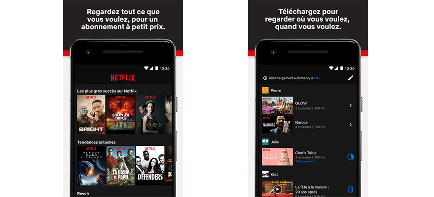 Netflix une application pour AndroidNouvelle fenêtre, iOSNouvelle fenêtre et WindowsNouvelle fenêtre.