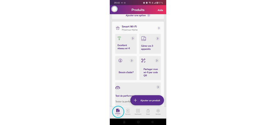 2. Allez dans l’onglet « Produits » et faites défiler l’écran jusqu’à trouver la section « Smart Wi-Fi ».