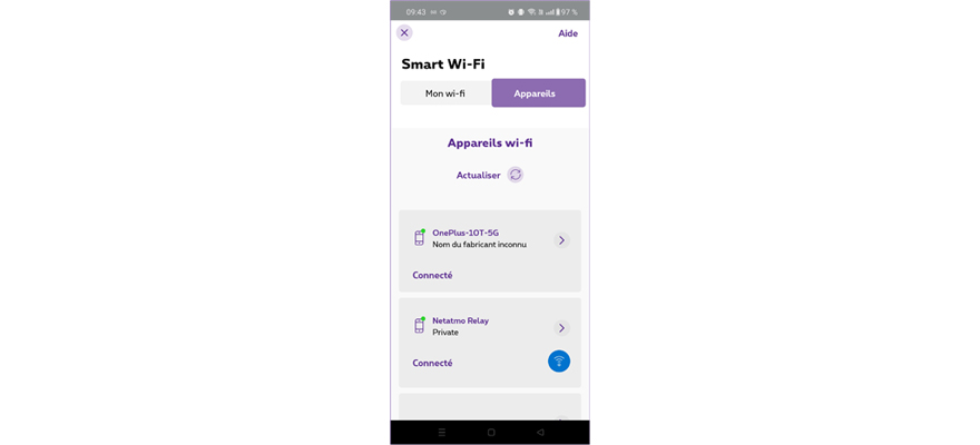Avec l'application Proximus+, vous pouvez non seulement voir qui est connecté à votre réseau Wi-Fi, mais aussi refuser l'accès à des inconnus ou à des appareils non désirés en appuyant sur un seul et unique bouton.