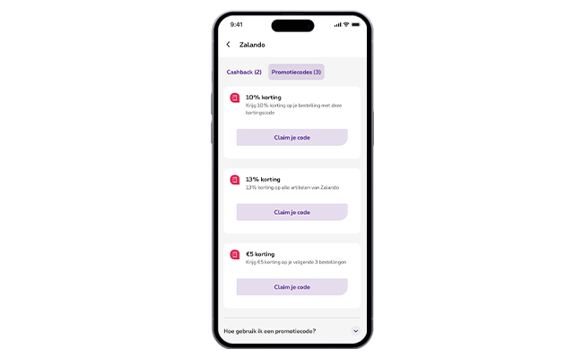 - Promocodes – directe kortingen bij verschillende partnermerken: bekijk de deals, kopieer de code en vermeld deze bij het afrekenen op de partnerwebsite.